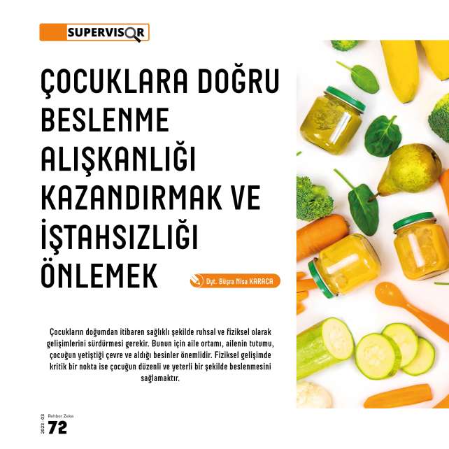 Çocukların doğumdan itibaren sağlıklı şekilde ruhsal ve fiziksel olarak gelişimlerini sürdürmesi gerekir. Bunun için aile ortamı, ailenin tutumu, çocuğun yetiştiği çevre ve aldığı besinler önemlidir. Fiziksel gelişimde kritik bir nokta ise çocuğun düzenli ve yeterli bir şekilde beslenmesini sağlamaktır. Devamı Rehber Zeka Dergisinde...